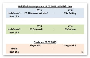 Schade. Leider konnte die Mannschaft die in sie gesetzten Erwartungen nicht ganz erfüllen. In einer denkbar knappen Auseinandersetzung mußten sie den Ahamern den Sieg überlassen. Wir gratulieren denen zum Erfolg und wünschen ihnen im „Final Four“ erfolgreiches Abschneiden. Mit dem Erreichen des Viertelfinales hat unsere Mannschaft wiederum mehr erreicht, als aufgrund der wenigen zur Verfügung gestandenen Schützen überhaupt zu erwarten war. Wir können erneut sehr zufrieden sein mit dem Abschneiden unserer 1. Mannschaft in der Sommersaison 2023