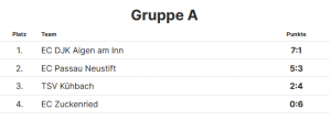 Aufgrund der bisher erreichten Punkte ist ein Abstieg nicht mehr möglich, wir hoffen jedoch in den verbleibenden beiden Spielen in Zuckenried (am 8. Juni) und zu Hause gegen Kühbach (am 15. Juni) noch die entsprechenden Punkte zum Erreichen des Viertelfinales -wenn möglich, als Erster der Gruppe dann in unserer Halle- zu holen.