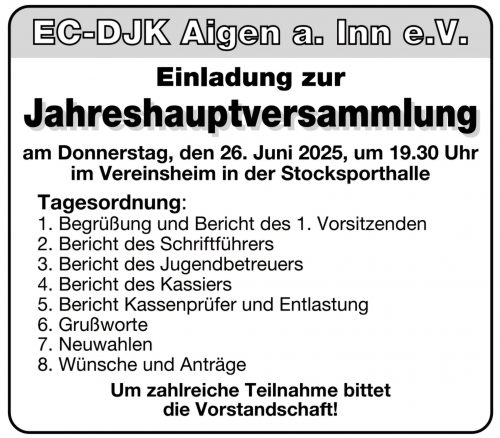 Gesamtbesucher : 68363©2012-2025 EC-DJK Aigen a. Inn | Powered by WordPress mit Easel | Subscribe: RSS | Nach oben ↑